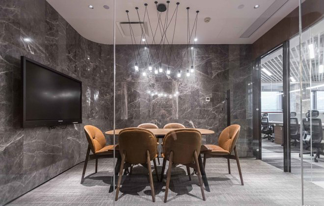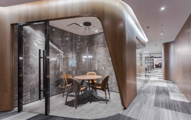 設(shè)計中每一間會議室都以最負(fù)盛名的騎士來命名。其中一間還原了十二騎士的圓桌場景,使用圓桌和十二個座位來象征那12名英勇的騎士。墻上描繪著騎士誓言,時刻提醒勇士們堅守騎士精神。總裁房中擺放的騎士元素與整體風(fēng)格相得益彰。