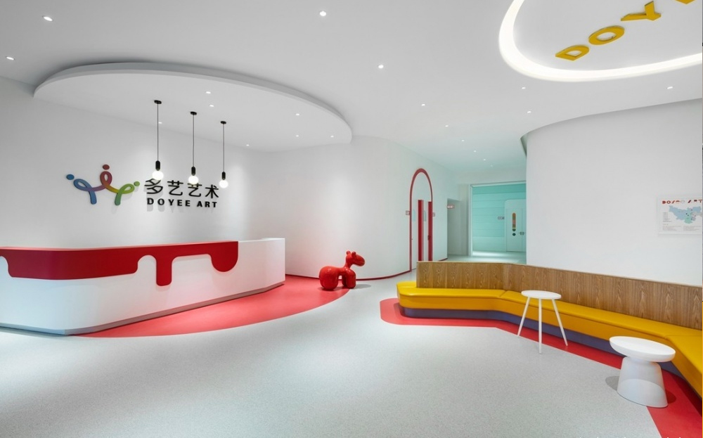 多藝藝術教室設計以快樂成長為主題,針對聲、才、形、表的教學課程,設計師規劃出口才、表演、舞蹈各具特色的教室。在滿足教學空間的基礎上最大限度預留了公共空間,來提高孩子們的交際能力,在交流和分享中增強他們人格化的培養。
